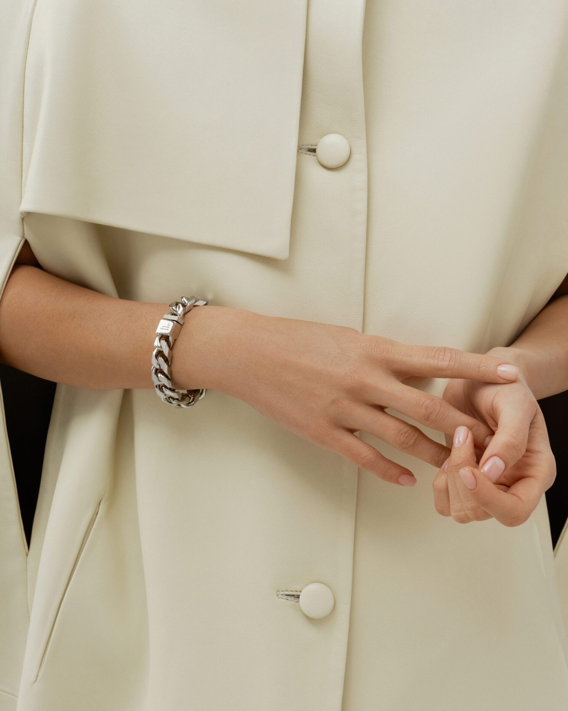 Браслет олицетворяет лаконичность и стиль. Он мастерски сочетает классику с современными тенденциями, создавая эффектный акцент на запястье.